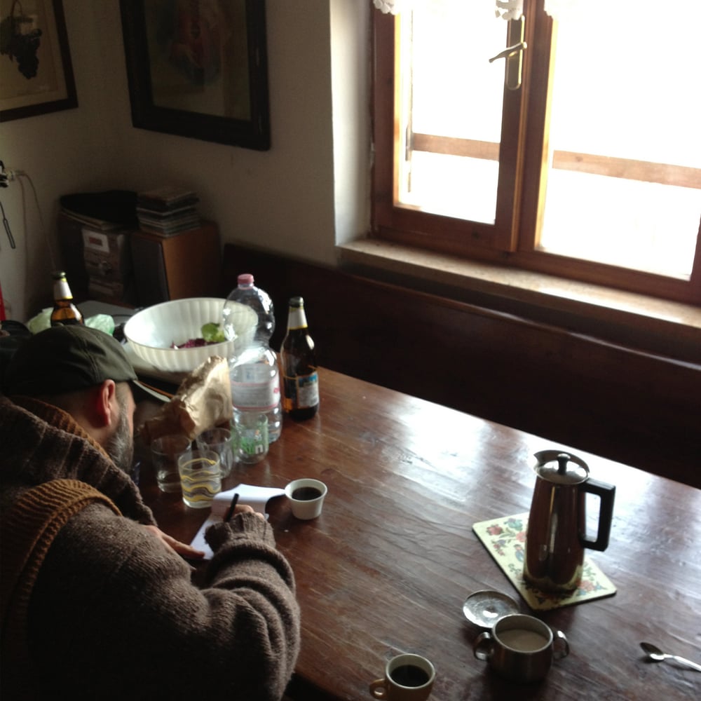 After the first casual meeting at Lessinia Psych Fest 2014 (Maxigross festival in the Lessini Mountains) Miles managed to come back in Italy during spring 2015 to work with the band. In march 2015 they went together in the studio house of the band in the small mountain village of Vaggimal (Verona) to improvise and record one month straight, interrupting the sessions only for a few shows between Verona and Roma. They put few microphones around a big room in the house to catch the general sound in a Daniel Lanois’s style, and they played in the dark of the night without any light to forget the individual sound of each member, focusing only on the main sound of the Music. Miles brought from LA some recordings he made with drummer Joe Westerlund (Megafaun, Califone…) and, starting from that material, they begin to play on that. After these magical musical encounter they became close friends, sharing an house in Verona (Casa Tega), many albums, shows and life experiences, forgetting about these Vaggimal Sessions, that bring inside of itself the magic and the purity of any first meeting.